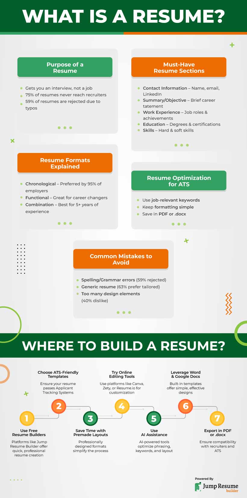 Creating a resume from scratch can take a lot of time. However, Jump Resume Builder make the process much easier. They offer well-designed templates, so you can quickly create a professional resume. In addition, these tools help ensure your resume is formatted correctly for job applications.